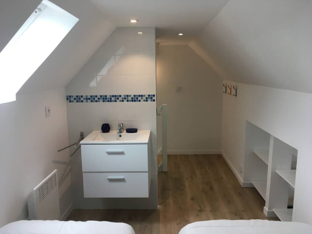 Cet appartement a été entièrement pensé pour vos vacances…Cette grande maison regroupe quatre logements de vacances tous sont entièrement neufs et très bien équipés…(induction, vrai four, lave vaisselle,…) literie de qualité grands formats (200) fabriquée en bretagne, salle de bains avec douches à l’italienne, avec en plus une grande terrasse centrale partagée 100 m2, qui permet de se retrouver si l’on réserve plusieurs appartements entre amis ou simplement d’y avoir son espace salon pour chaque appartement…