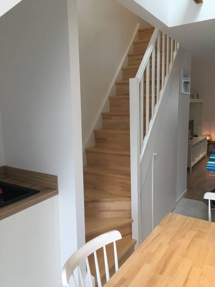 Ambiance feutrée simple et reposante en blanc et turquoise pour cet appartement entierement neuf en duplex situé dans une vieille et belle maison du siècle dernier avec une chambre parentale avec salle de bains privative et chambre cabine idéale à l’étage pour deux enfants… ils auront même leur espace douche et lavabo rien que pour eux…situé en hyper centre ville et au calme. Si vous voulez réserver sur le palier son jumeau pour des amis, c’est possible ! TOUT à pied…entièrement neuf…