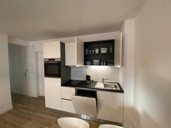 Confortable avec deux vraies chambres, une parentale avec lit 160 X 200 avec grand placard et l’autre avec deux lits 80 X 200 et rangements, une salle de bain avec grande douche à l’italienne, une petite buanderie, et une pièce de vie avec cuisine ouverte équipée (induction, four, lave vaisselle réfrigérateur avec compartiment congélateur, cafetière tassimo,…tout est neuf ! je vous laisserai découvrir la décoration …, Au plaisir de vous recevoir à Concarneau !
